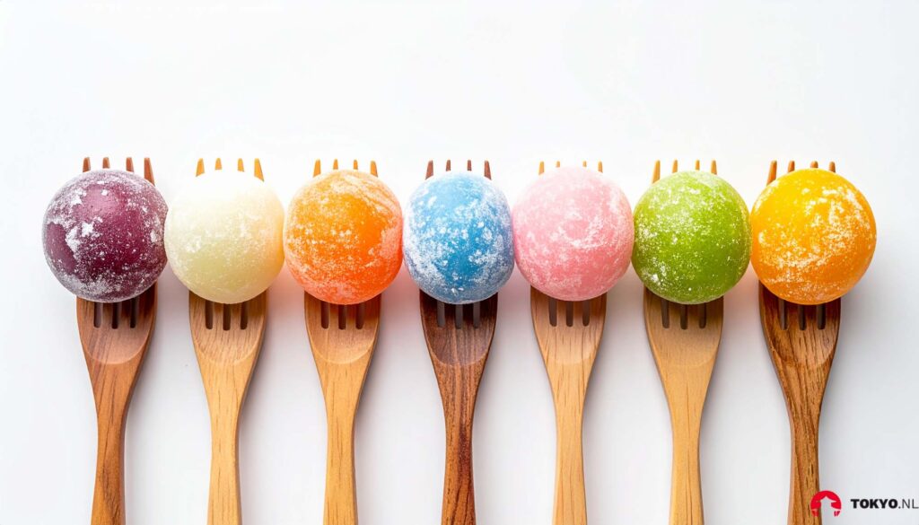 Mochi lijkt misschien op een dango of daifuku maar is dat zeker niet, gezien deze kleurige snacks gemaakt zijn van rijstmeel in plaats van kleefrijst. Hoewel ze allemaal wel onder de noemer wagashi of mochigashi vallen en vaak tijdens Japanse theeceremonies worden geserveerd smaken ze echt heel anders.