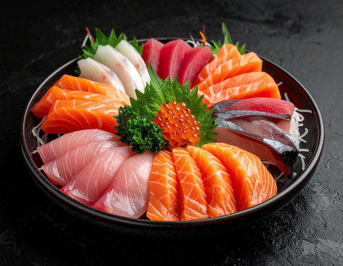 SashimiVis of schaaldieren, meestal rauw geserveerd zonder toevoegingenDe ultieme viservaring beleven? Dan is sashimi het absolute toppunt. Vis geserveerd in zijn meest pure vorm en meestal rauw.