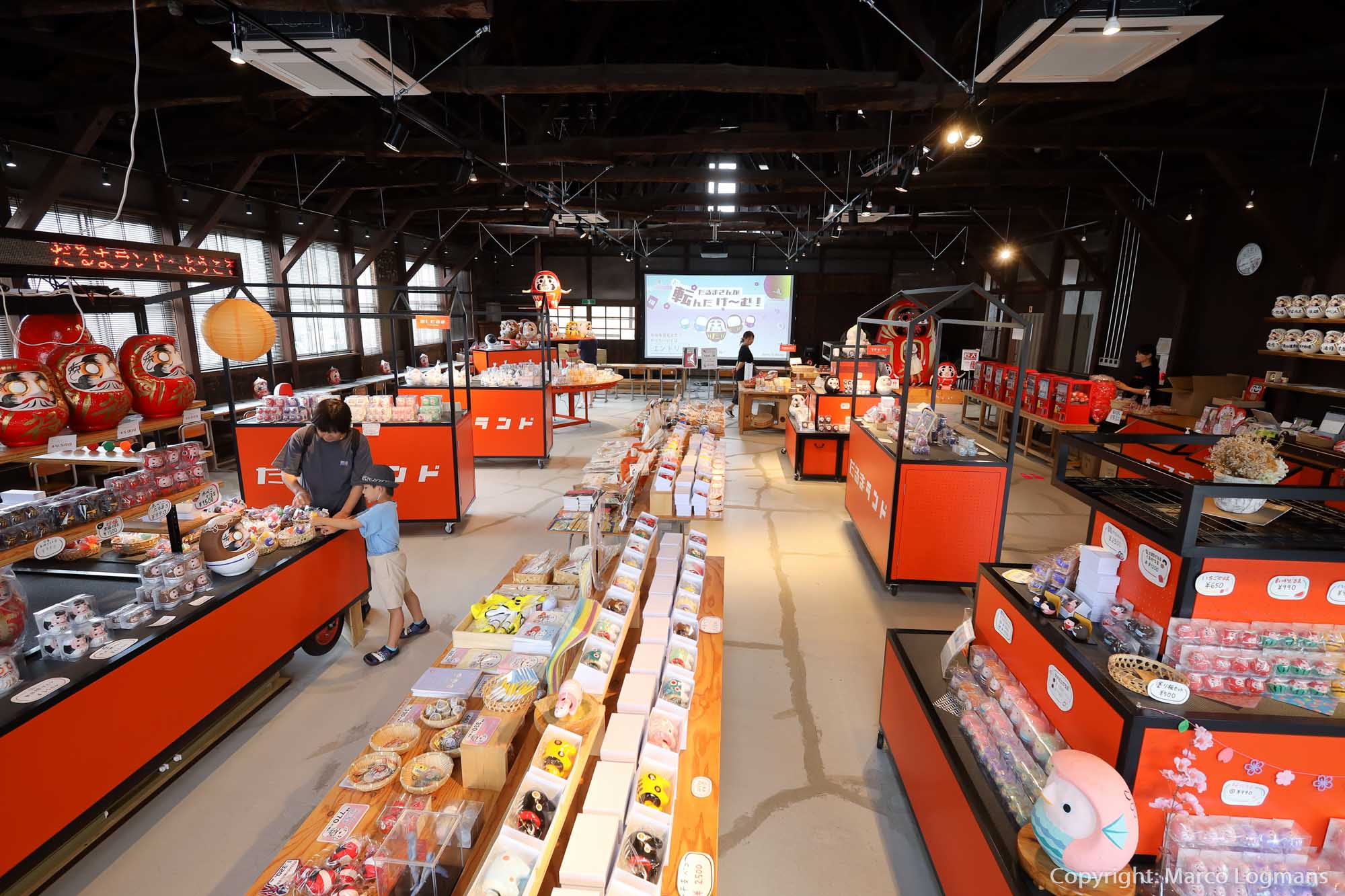 Kinderen kunnen hier tekeningen maken, en zelfs persoonlijk een eigen daruma design maken. Aan de achterkant van deze winkel is een grote daruma voor een leuk selfie, en een spel dat je kunt spelen op een groot scherm.