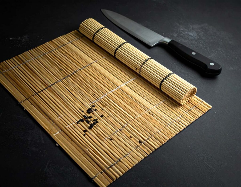 Op de sushi mat maak je de sushi klaar voordat hij gerold kan worden. Deze mat is bestendigd tegen sneden van het mes maar toch flexibeler dan bijvoorbeeld een snijplank van plastic of hout. Daardoor kan je de sushi gemakkelijk vormen. De echte pro sushi chefs gebruiken een matje van bamboo of houtstokjes en rollen de sushi met de hand. Het is best simpel, leg een norivel (zeewiervel) over het matje, verspreid hier evenredig sushirijst op en leg de ingrediënten die jij wilt in een lijntje neer. Rollen maar!