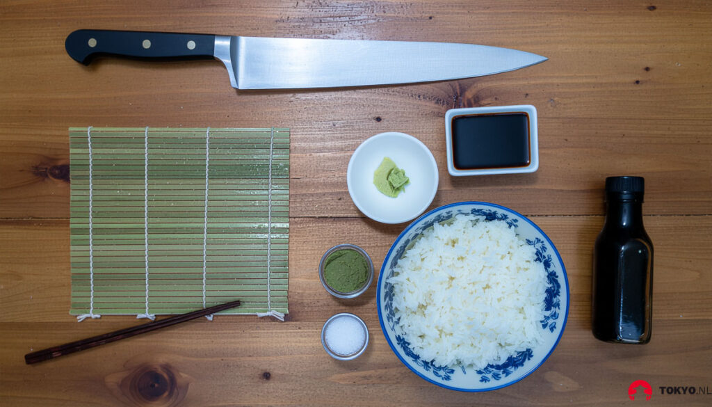 Een sushi set bestaat eigenlijk alleen uit een sushi mes en bamboe matje. Tegenwoordig heb je wel een hoop sushi makers/sushi rollers die je kunnen helpen bij het rollen van de sushi. Ze noemen ze soms ook wel sushibazooka’s.