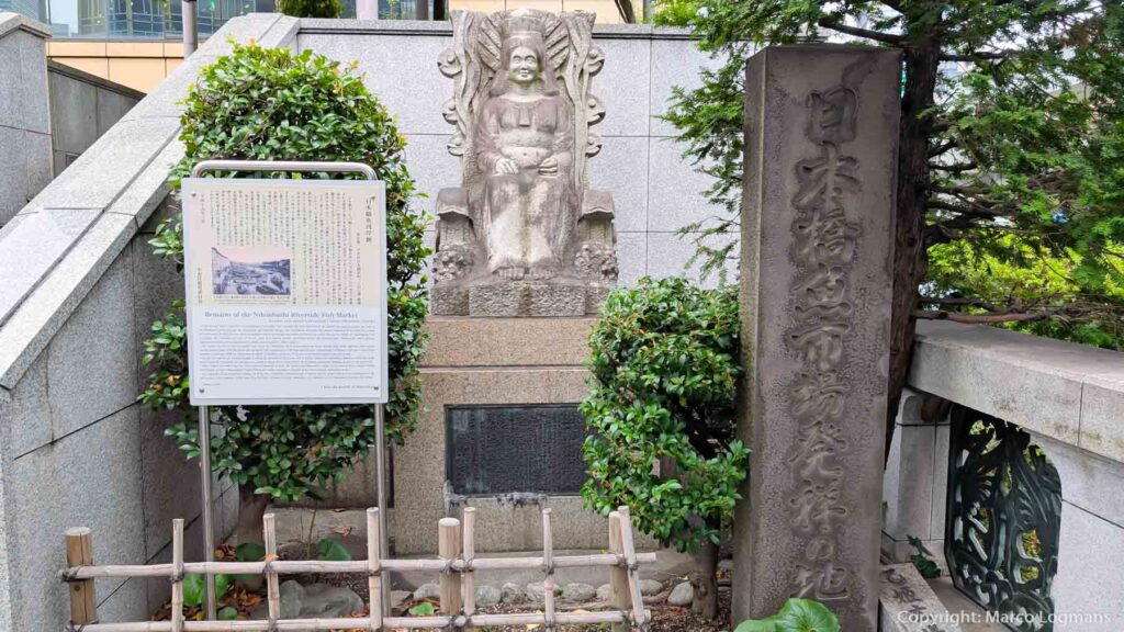 Op de plaats waar nu het loket staat van Tokyo Cruise, klopte eeuwenlang het hart van de vismarkt. Hier brachten ze dagelijks verse vis aan land. Dienders zochten de mooiste stukken uit voor de Shogun en zijn hofhouding. Wat overbleef werd verkocht. De vismarkt kende qua hygiëne echter geen onberispelijke reputatie. Bij iedere uitbraak van cholera wees de stad al te makkelijk met de vinger richting de Nihonbashibrug. Vishandelaars behandelde je zonder respect en behoorden tot de laagste klasse.